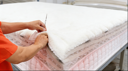 奥的新款手工床垫摒弃了传统床垫制造中常用的胶水粘合方式,用慢工出细活的匠心,由技艺精湛的老师傅,通过一针一线纯手工进行缝制,整张床垫不实用一滴胶水,不仅确保了床垫的稳定性、耐用性,还从根本上避免了甲醛、苯等有害物质的释放,更保障了消费者的健康。